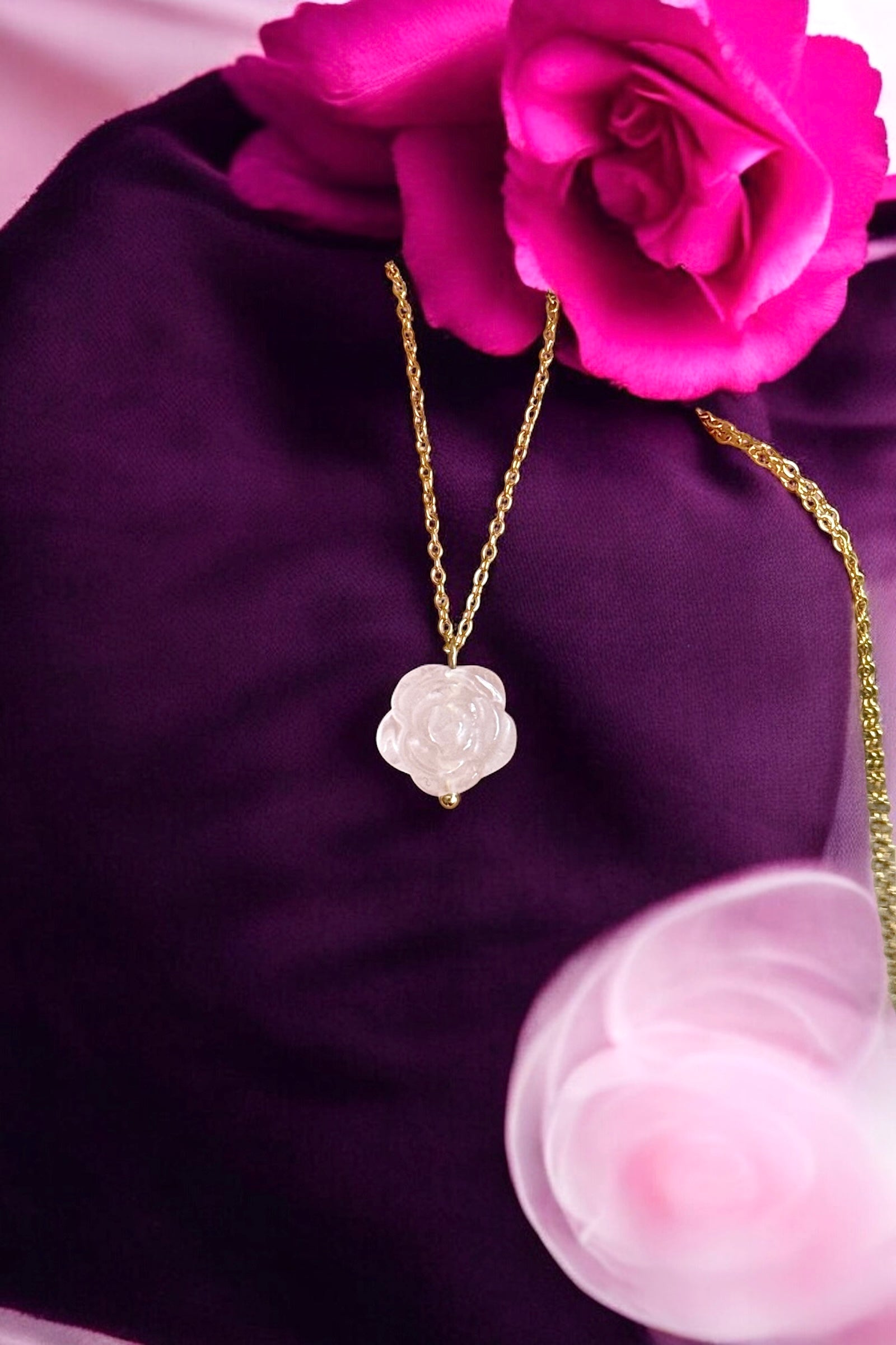 Rose aus Rosenquarz | Halskette handgefertigt